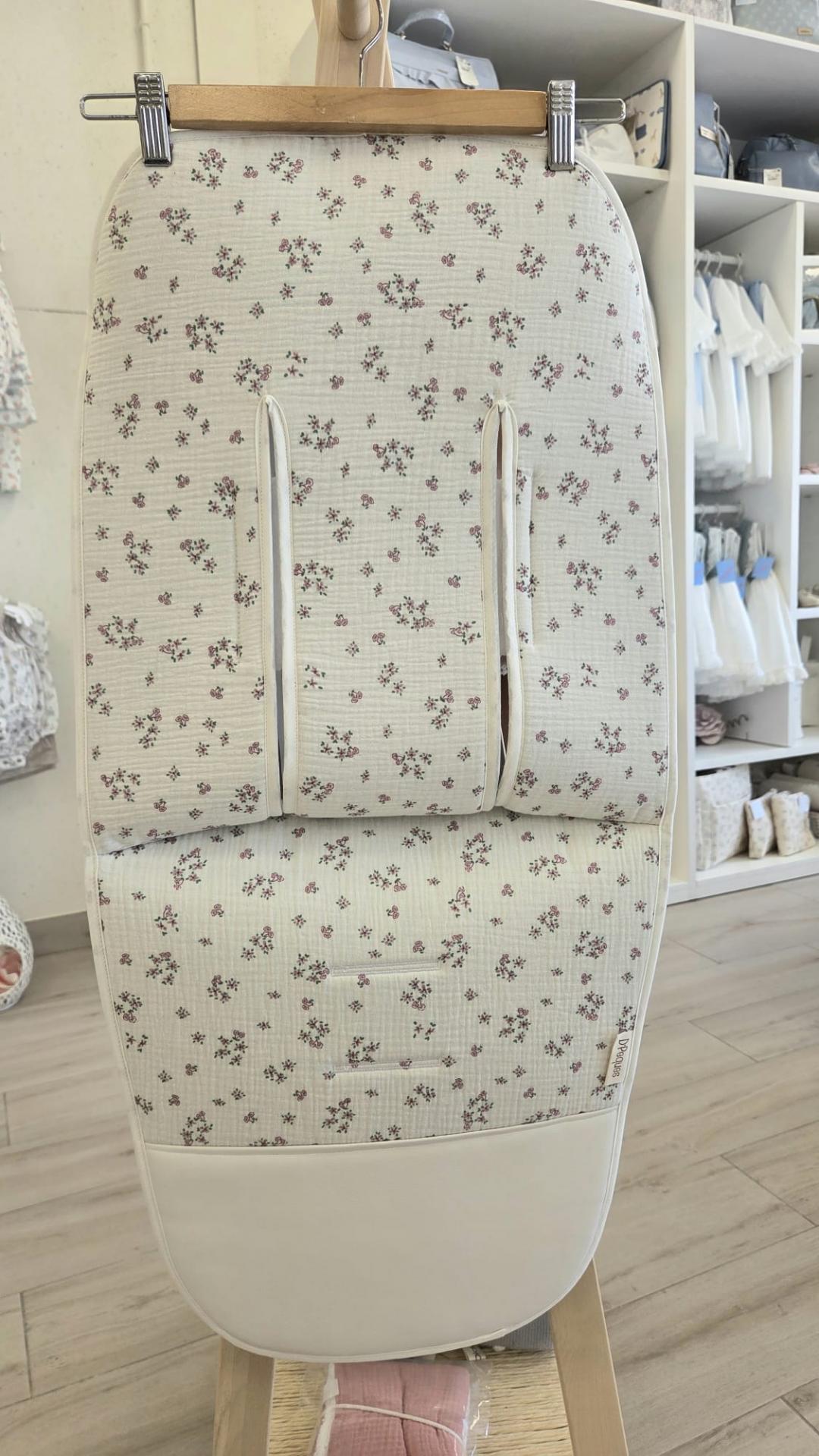 Colchoneta silla universal transpirable con pies de polipiel flores rosa D´peques