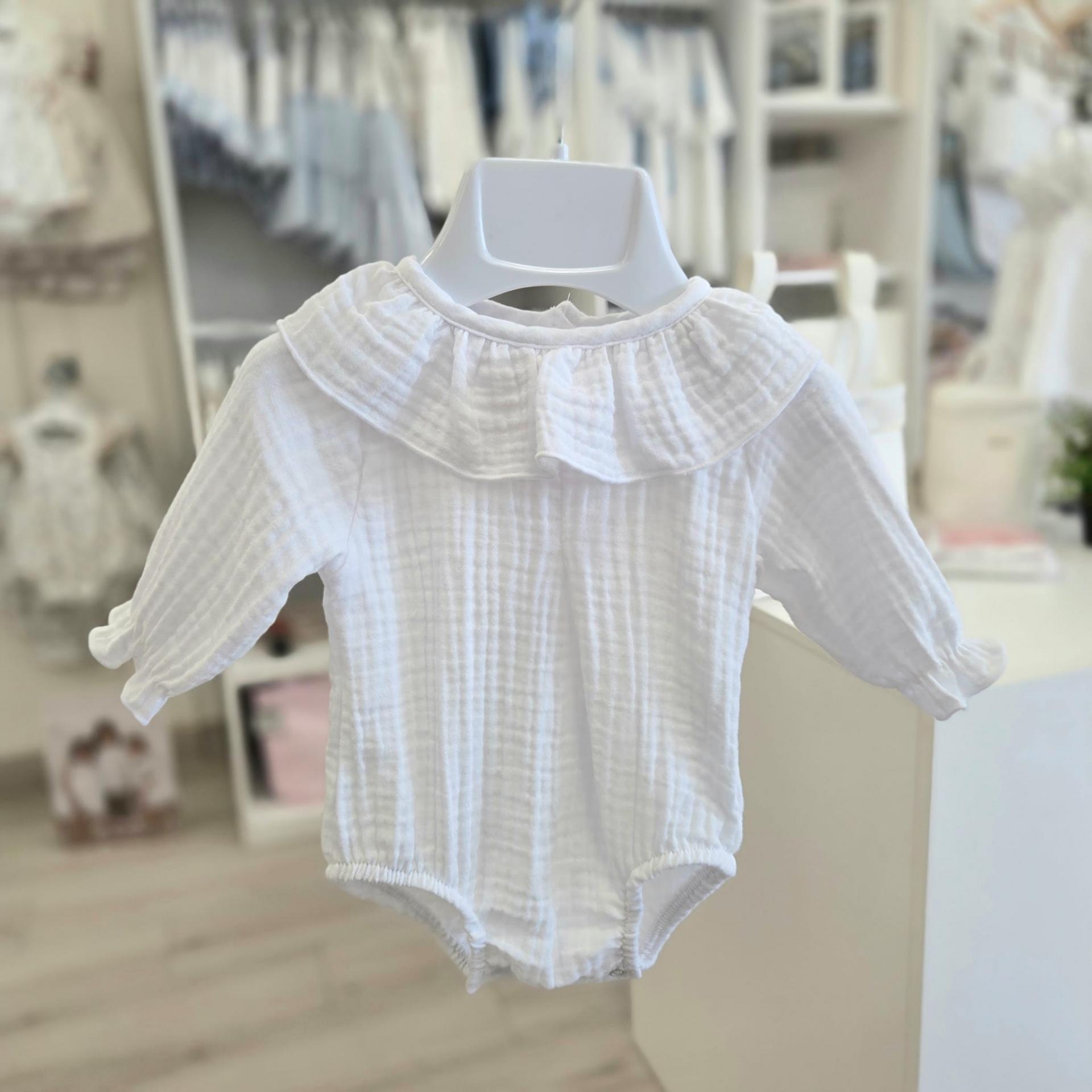 Pelele bambula blanco manga larga
